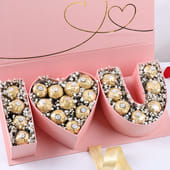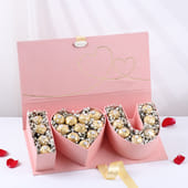 Express your love with this beautifully crafted ‘I Love You’ Ferrero Rocher hamper. The iconic Ferrero Rocher chocolates are nestled inside the elegant heart-shaped boxes, adorned with delicate Baby’s Breath flowers for a perfect romantic touch. Presented in a chic rectangular ‘I Love You’ box, this thoughtful gift is the ideal way to celebrate love and affection. Whether for Valentine’s Day, anniversaries, or any special moment, this hamper is designed to make your loved one feel truly cherished and adored.