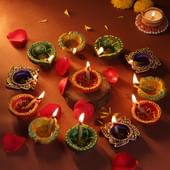 A symbol of prosperity and devotion comes alive in this festive hamper. A lush Money Plant rests in a sleek white self-watering pot, crowned with polished white pebbles that enhance its charm. Alongside, beautifully crafted Laxmi Ganesh idols radiate blessings of wealth, wisdom, and good fortune. Completing the ensemble are twelve hand-painted terracotta Diyas, perfect for filling the home with light and warmth. A gift that combines nature, spirituality, and tradition, it carries the essence of festive harmony, making it a thoughtful gesture of love and good wishes for family and friends.