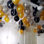 Around 40 To 50 Balloons With Ribbons Are Placed On The Ceiling And Rest Are Placed In The Form Of Bunches Or Free Floating On Floor
