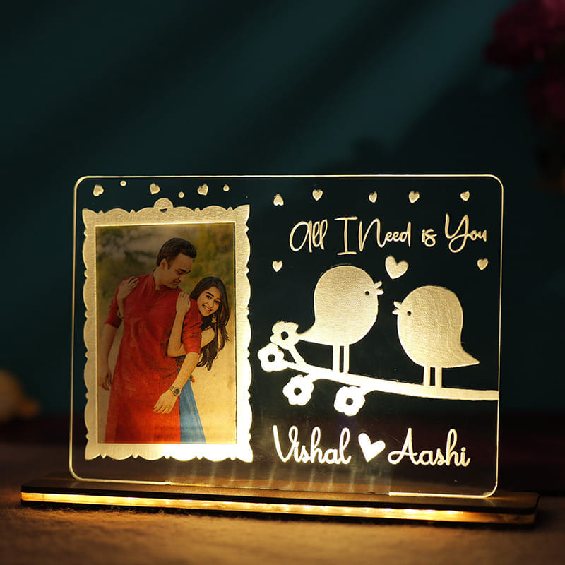 This personalised LED tabletop is the perfect way to cherish a romantic moment that lasts forever. Customised with a sweet photo of you and your loved one, it captures the essence of your bond. The adorable design of two birds and a heartfelt message adds a charming touch, making it an ideal keepsake for anniversaries, Valentine's Day, special dates, or just a reminder of your love. As it softly glows, it serves as a constant symbol of your love, illuminating the room and your hearts, bringing a smile every time you look at it. The perfect gift to express love in the most glowing way!