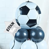 This balloon arrangement is made to impress. Topping the setup is a bold black and white football foil balloon, promising to delight any football lover. Right beside it, a sleek silver star foil balloon carries a personalised name, adding a special touch. The base is built with a striking mix of black and white latex balloons, creating a balanced and dynamic look. Whether it’s a birthday, match-day party, or a surprise for a true fan, this balloon arrangement is the perfect choice.