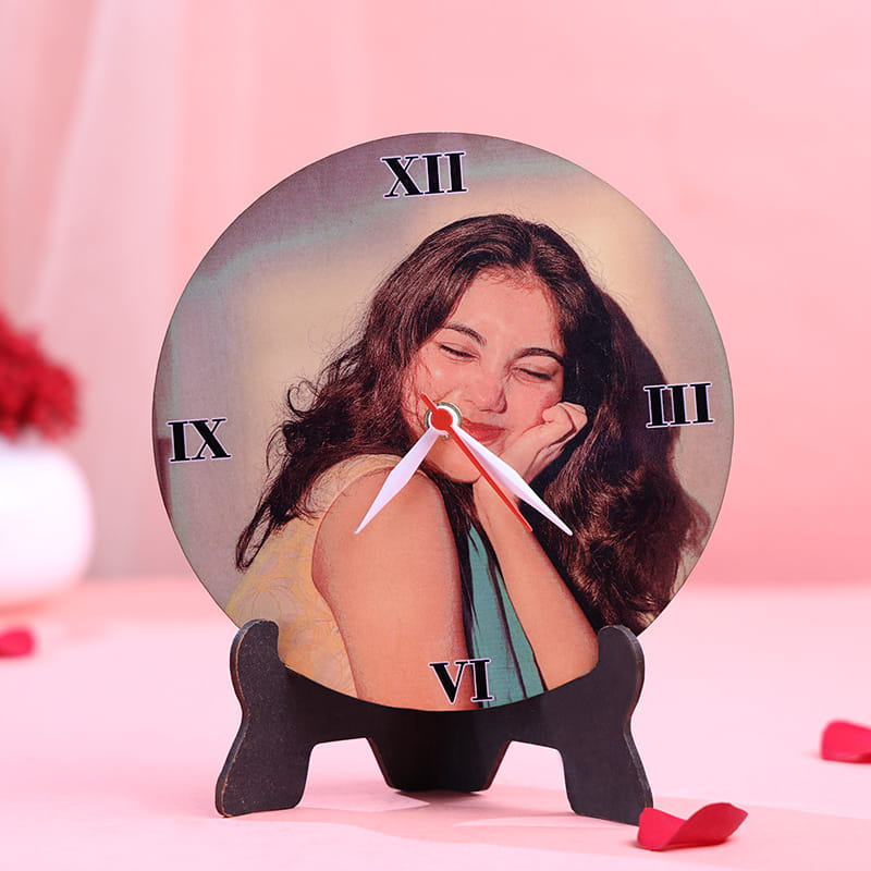 Confess your love with the timeless beauty of this circular table clock. This personalised clock boasts a size of 7 inches and a stunning stand of 6x4. Perfect gift for your loved ones this clock can be gifted to your friends, family, or better half. The intricate design of this arrangement symbolizes the beauty of love and the importance of time. Let this clock be a constant reminder of your cherished memories and never-ending love. Treat your loved ones to this charming clock and make their day unforgettable.