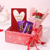 Say “I love you” in the most heartfelt way with this romantic open tray box that speaks volumes. Featuring a bouquet of three radiant red roses to symbolise your passion, a heartfelt “I Love You” greeting card to express your feelings, and a personalised Polaroid photo to make the moment truly unforgettable, this gift is perfect for Valentine’s Day, anniversaries, or simply celebrating your love. Wrapped with elegance and warmth, it’s a gesture that will make your special someone’s heart bloom with joy.
