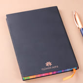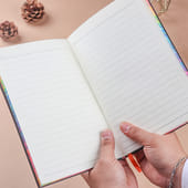 This black premium journal exudes elegance and sophistication, offering the perfect canvas for your thoughts, dreams, and ideas. The smooth, matte finish and subtle design are complemented by a vibrant rainbow-hued edging, adding a touch of personality to the sleek exterior. Whether for personal use or as a thoughtful gift, this journal combines style and practicality. Its high-quality, pastel-coloured pages provide a luxurious writing experience, making it a perfect companion for anyone who appreciates both beauty and functionality.