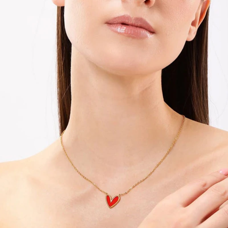 A bright enamel heart hangs from a fine chain, its smooth curves and polished shine giving a cheerful twist to classic jewellery. The rich red hue feels warm against the gold?tone metal, creating contrast that draws the eye without ever looking over the top. Wearing it adds a pop of colour and personality that works just as well with everyday outfits as it does with dressier looks. Perfect for gifting on Valentine’s Day, wearing on a memorable date night, or marking an anniversary with something that speaks of affection and thoughtfulness.