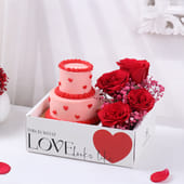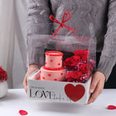 This stunning gift hamper combines the timeless beauty of red roses with the irresistible allure of a chocolate bento cake, making it the perfect gesture of love. The elegant blooms, symbolising passion and romance, are complemented by the delicious treat, creating a sweet and thoughtful present for any special occasion, such as Valentine’s Day. Packaged in a clear box with the heartfelt message, "This Is What Love Looks Like," it’s a gift that beautifully expresses affection, making your loved ones feel cherished and adored.