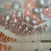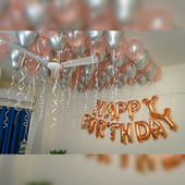 Create a memorable birthday celebration with our Rose Gold Balloon Surprise decoration package. This stunning package includes 50 silver chrome balloons and 50 rose gold metallic balloons (not helium), meticulously arranged with ribbons at your chosen location. The 'Happy Birthday' rose gold foil balloons add an extra touch of elegance to your decor. Delivered to your home anywhere in the city, our professional decorator ensures all safety precautions are followed, including regular temperature checks, hand sanitizers, and face masks. Leave the details to us, and our decorator will arrive at your selected time slot to transform your space into a birthday wonderland. All taxes are included for your convenience.