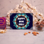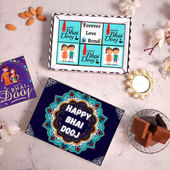 Mark the joy of Bhai Dooj with a thoughtful gift that speaks of love, sweetness, and tradition. This beautiful gift set includes a handmade chocolate box paired with a vibrant greeting card designed to capture the festive spirit. Each bite of chocolate celebrates the warmth of siblinghood, while the card adds a heartfelt touch to your wishes. With designs reflecting the everlasting bond of brothers and sisters, this gift is a keepsake of memories, emotions, and the promise of togetherness for years to come.