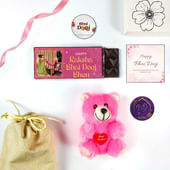 Hamper Includes - Chocolate Bar, Teddy, Potli and Greeting Card