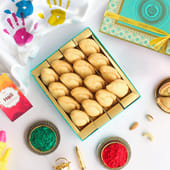 Celebrate Holi with thoughtful gifts like sugar-free Gujiya, light yet indulgent, offering the same traditional flavour with a healthier twist. The crispy, golden pastry shells are filled with a rich, aromatic stuffing that delivers a delightful bite, without the sugar. Paired with vibrant colours and presented in an elegant royal blue gift box. Whether you’re celebrating with family, friends, or colleagues, it’s an ideal choice for anyone looking to enjoy the festivities guilt-free. Share the sweetness of Holi with those you care about to make the occasion even more special.