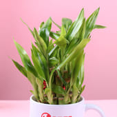 This bamboo plant makes a meaningful romantic gift. Set in a ceramic mug adorned with a Love Is In The Air UV sticker, it brings warmth and positivity to any corner. The lush green bamboo symbolises good fortune, growth, and harmony, making it a thoughtful expression of lasting love. Easy to care for and pleasing to the eye, it fits beautifully into everyday spaces. Perfect for Valentine’s Day and other romantic moments, this gift serves as a gentle reminder of your love that will surely become a cherished memory.