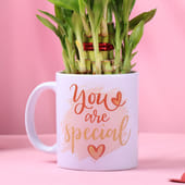 This beautiful 2-layer bamboo plant is the perfect gift to express love and appreciation. Set in a charming ceramic mug with the heartfelt message, "You are special," it adds a meaningful touch to your gesture. Personalised with a cherished photograph on the back, it’s sure to bring a smile to your partner’s face. The plant symbolizes good luck and prosperity, making it an ideal gift for occasions like Valentine’s Day, anniversaries, or romantic surprises. It will surely serve as a lasting reminder of your love.