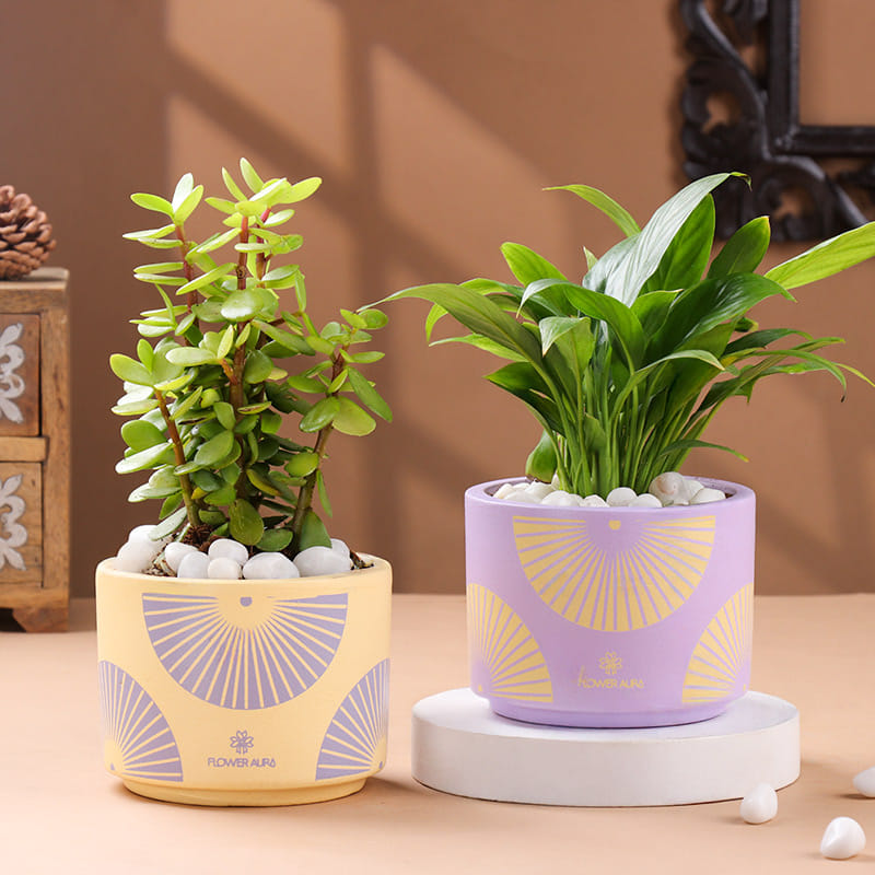 Let good fortune and tranquillity bloom together with the Jade and Peace Lily Plants Combo. Known for attracting prosperity, the Jade plant pairs beautifully with the Peace Lily, a symbol of purity and calm. Together, they brighten up any space while naturally purifying the air. Perfect for homes, offices, or gifting, this duo brings a breath of positivity and effortless charm. Easy to maintain and beautiful year-round, it’s a simple way to invite luck, peace, and freshness into your life — or into someone else's!