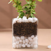 Bring home the Air-Purifying Jade Plant elegantly housed in a chic square glass terrarium. This delightful plant is more than just a visual treat; it purifies your indoor air, ensuring a healthier living space. The white pebbles, both beneath and atop the soil, add a touch of sophistication, highlighting the plant's vibrant green foliage. Perfect for desks, shelves, or as a thoughtful gift, this Jade Plant combines style with function, making it an essential addition to any modern home or office.