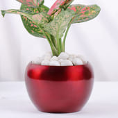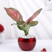 This stunning Aglaonema plant, housed in a vibrant Red Metal Pot, adds a splash of colour and vitality to any space. Known for its striking foliage, this plant is perfect for bringing good fortune and a touch of elegance into the home. The white pebbles and "Love You More" topper make it a beautiful and heartfelt gift. Whether for Valentine's Day, an anniversary, or any romantic occasion, this thoughtful gift is a lasting token of love and positivity, making every moment with your loved one even more special.