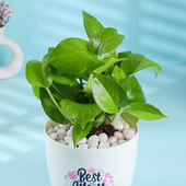 A gift as enduring as your mother’s love, this Money Plant in a “Best MOM Ever” pot is the perfect blend of nature’s beauty and heartfelt sentiment. The lush, green leaves of the Money Plant bring vitality and positive energy to any space, while the white pot, adorned with cheerful floral designs, adds a personal and loving touch. A thoughtful Mother’s Day gift, this plant serves as a lasting reminder of your appreciation, symbolising growth, prosperity, and good fortune. Whether placed on her desk or windowsill, it will surely brighten her day!