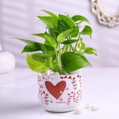 This green money plant is beautifully placed in a white terracotta pot, decorated with charming heart motifs in shades of red. The plant is topped with a cheerful "Love U Mom" topper, adding a heartfelt touch to the gift. It’s the perfect choice for expressing love and appreciation on occasions like Mother’s Day or simply to show affection. This thoughtful gift combines nature and sentiment, making it a lasting symbol of love and care for your mom. A wonderful way to brighten her day with a meaningful gesture.