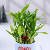 A delightful fusion of nature and festive spirit, this 2-layer Bamboo plant sits gracefully in a white ceramic mug, symbolising prosperity and good luck. Adorned with pebbles for a polished look, it is topped with a cheerful "Happy New Year" artwork, making it the perfect gift for new beginnings. Whether you're ringing in the new year, gifting to a friend, or decorating your home, this thoughtful, vibrant addition will grow alongside your good wishes. Ideal for spreading joy, peace, and positivity in any space or celebration.