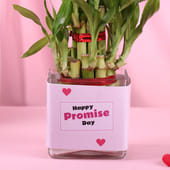 Celebrate Promise Day with this thoughtful 2-layer bamboo plant, elegantly displayed in a square glass pot. Its fresh green stalks represent luck, strength, and positive energy, making it an ideal gift for your loved one. The plant is beautifully adorned with a "Happy Promise Day" sleeve, adding a personal touch to this meaningful gesture. Easy to care for and symbolising longevity, it brings a sense of peace and good fortune into any space. A perfect way to honour your promises and create lasting memories!
