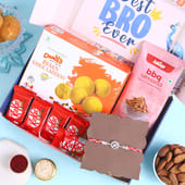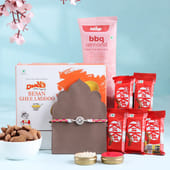 Celebrate Raksha Bandhan with a blend of elegance and indulgence. The Divine Swastik Rakhi, crafted in 925 sterling silver, features a finely detailed symbol of prosperity, tied with vibrant threads that reflect festive warmth. Paired with smoky BBQ almonds that bring the crunch, rich Besan Ghee Ladoos full of desi nostalgia, and five classic KitKat bars for a playful chocolate fix. This Rakhi hamper is made for the brother who loves a bit of everything. Wrapped in love, blessings, and irresistible flavours, this gift says “Best Bro Ever” in the most heartfelt way.