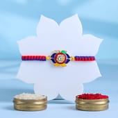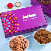 This colorful floral Rakhi features vibrant enamel petals with a stone-studded center, radiating a lively and festive charm. The intricate design brings an elegant touch to your brother’s wrist. Paired with BK roasted almonds and raisins, this combo combines tradition and taste. The almonds provide a crunchy texture while the raisins offer a natural sweetness, making it a delightful treat. The set comes with Roli and Chawal, completing the perfect Raksha Bandhan gift for your sibling.