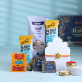 Celebrate the sacred bond of Raksha Bandhan with the FlowerAura Premium Raksha Bandhan Hamper, perfectly crafted to blend tradition with healthy indulgence. This elegant box features a stunning Designer Mandala Rakhi symbolizing harmony and protection. Accompanying it are nutritious treats like a wholesome Trail Mix and a Set of 2 Protein Bars—ideal for the health-conscious brother, bhai, or cousin. The hamper also includes traditional Roli Chawal for rituals and a heartfelt Rakhi Greeting Card to express your love. A meaningful gift that balances spirituality, health, and heartfelt emotions.