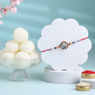 Express your heartfelt affection this Raksha Bandhan with this beautifully designed floral-themed rakhi. Adorned with delicate blue enamel flowers gracefully set upon a sparkling stone-studded circular charm, this rakhi radiates elegance and style. The meticulously chosen beads on either side enhance its beauty, while the vibrant red thread signifies your deep-rooted bond. An exquisite blend of tradition and contemporary craftsmanship, this rakhi is sure to be treasured by your brother. Strengthen your everlasting bond with this elegant token of love.
