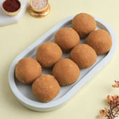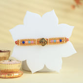 Celebrate the sacred bond of love and protection with this vibrant beaded Om Rakhi paired with delicious Besan Ladoos. This designer Rakhi features colourful beads and a golden Om symbol at the centre, representing peace, strength, and spiritual harmony. Crafted with soft red threads, it ensures a comfortable fit while making a bold festive statement. Paired with mouth-watering Besan Ladoos, this combo brings together tradition and taste, making it a heartfelt gift to express your blessings, love, and gratitude to your brother this Raksha Bandhan. A perfect way to sweeten the celebration.
