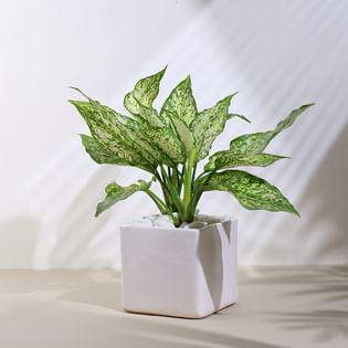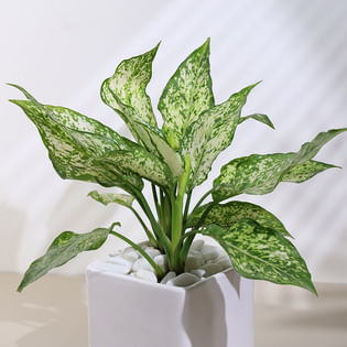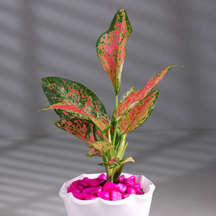 Pink Aglaonema Plant With Clip Wooden Photo Frame