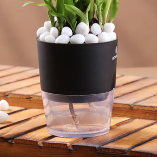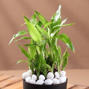 Bamboo In Stylish Black Planter