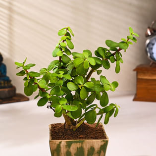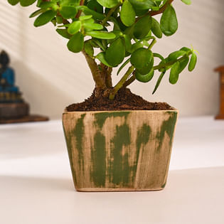 Elegant Jade Plant In Ceramic Sunrise Pot