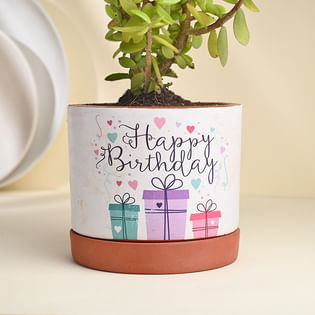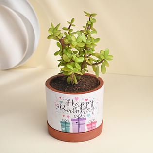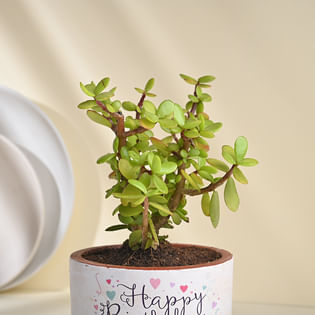 Elegant Jade Plant In Ceramic Sunrise Pot