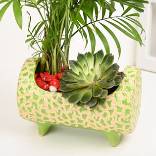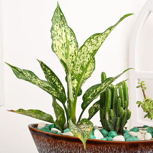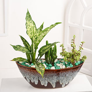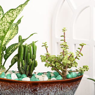 Jade Plant Aglaonema N Tower Cactus In Ship Shaped Pot