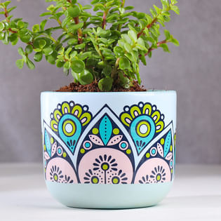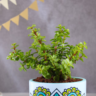 Elegant Jade Plant In Ceramic Sunrise Pot