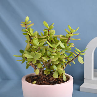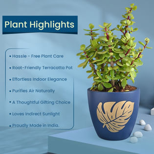 Elegant Jade Plant In Blue Pot