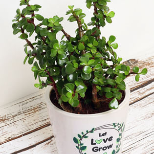 Live Jade Plant In Blossom White Pot