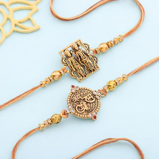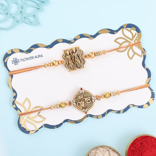Blue And Golden Threads Evil Eye Bhaiya Bhabhi Rakhi Duo