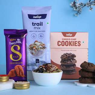 Floral Rakhi With Savoury N Sweet Delights Hamper
