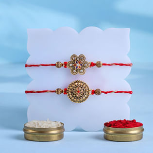 Elegant Floral Rakhi Duo With Almonds N Raisins