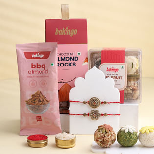 Golden Rakhi Duo With Sweet N Nutty Hamper