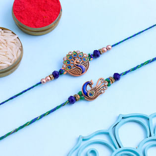 Peacock Rakhi Duo N Chocolate Delights Hamper