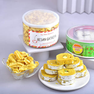 Designer Rakhi Duo With Besan Gathiya N Batisa