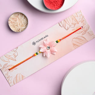 Radiant Flower Tassel Bhaiya Bhabhi Rakhi Set