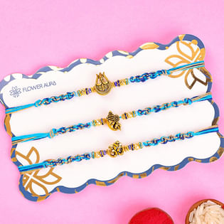 Pastel Trio Rakhi Set With Rasgulla Treat