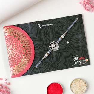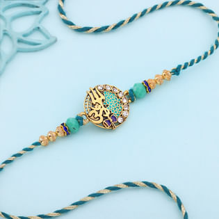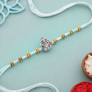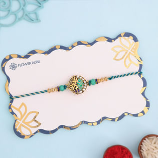 Mint Green Ganesha Rakhi With Sweet N Nutty Treats