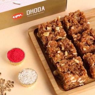 Om And Swastik Rakhi Set With Dhoda Barfi