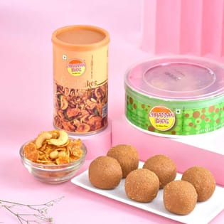 Trishul Damru Rakhi With Chhappan Bhog Dalmoth N Besan Ladoo