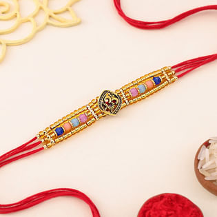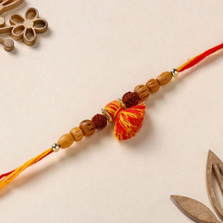 5 Shiny Rudraksha And Beaded Rakhi Set