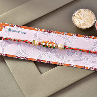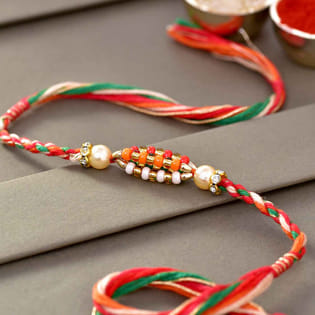 5 Shiny Rudraksha And Beaded Rakhi Set