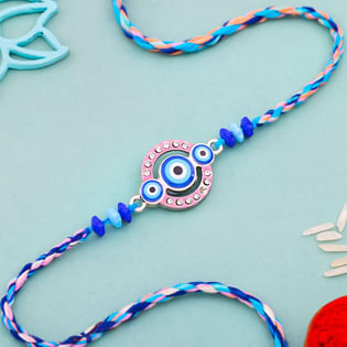 Chic Evil Eye Rakhi With Kaju Katli